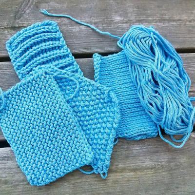 För att jämföra de olika stickstilarna tar vi provlappar stickade av