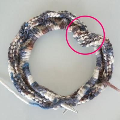Efter flera centimeter? Då kommer rätt-stickningen verkligen att synas. Kan du leva med en turban-knut på ditt projekt?