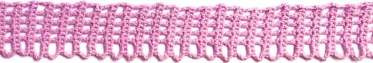 * Lägg upp 12 lm. Virka 1 sm i 6:e m från virknålen. Virka 1 fm, 1 hst, 2 st, 1 lm, hoppa över 1 m, 1 st i sista m. Vänd inte. Upprepa från * tills kanten är så lång som du vill.